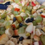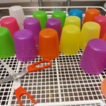 Die Kinder durften sich aussuchen, bei welchem Kochprojekt sie sich am liebsten beteiligen möchten und nachdem sich einigermaßen ausgeglichene Gruppen der Grießklößchensuppe und dem Gurkensalat, der Pizza und dem Obstsalat zugeordnet hatten, ging es los. Die Kinder zogen ihre Schürzen an, Zutaten wurden zusammengesucht und innerhalb von ein paar Minuten war alles schon in vollem Gange und es wuselte im ganzen Foyer.